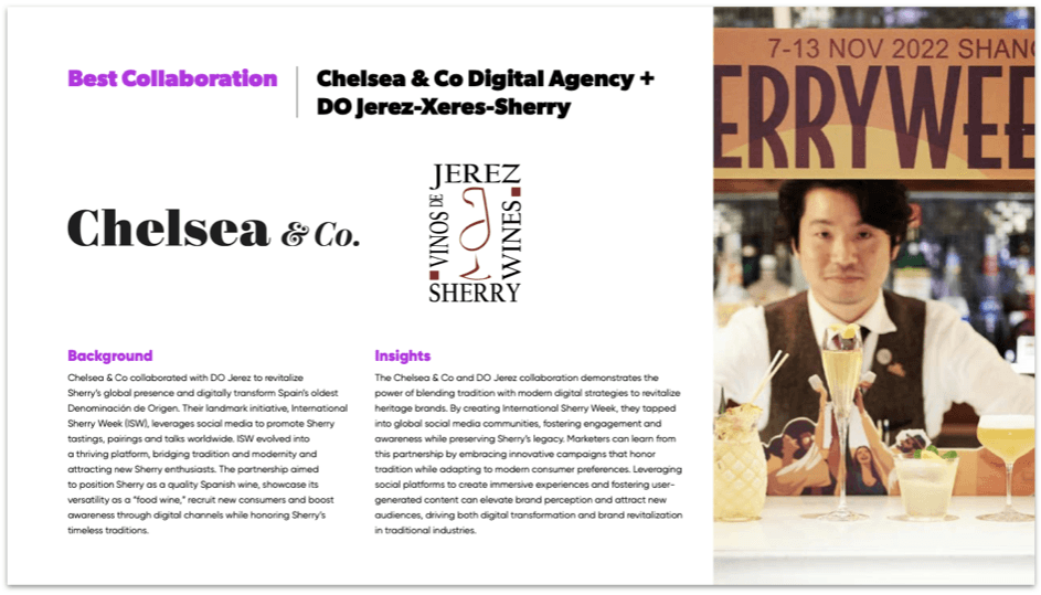 This story begins with a big smile and a pat on the back: we have won another award for our work. Hooray! A few weeks ago, we were informed that our collaboration with the DO Jerez-Xeres-Sherry, and in particular, the rejuvenating effects that the International Sherry Week has had on the wines of the region, has been recognised by the Digiday Awards Europe as the best collaboration of the year 2024.