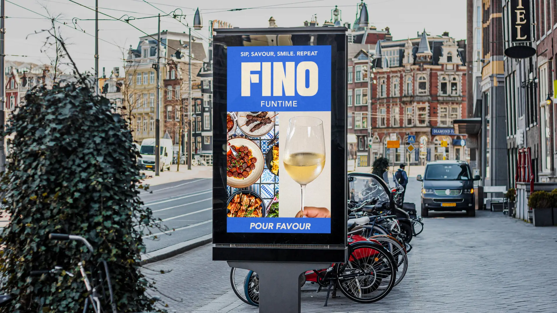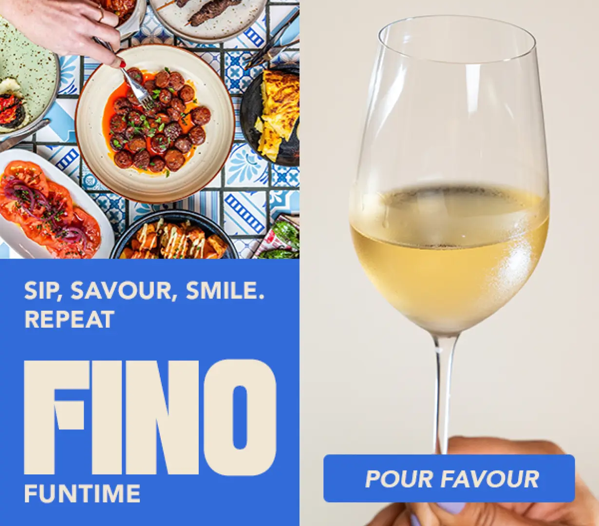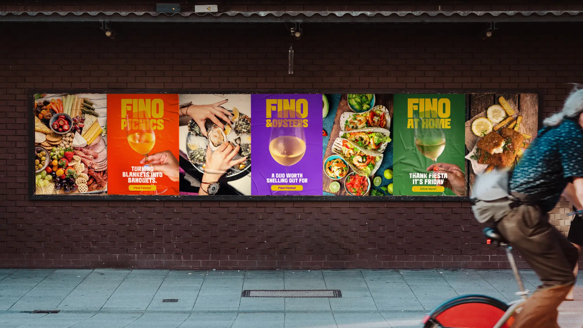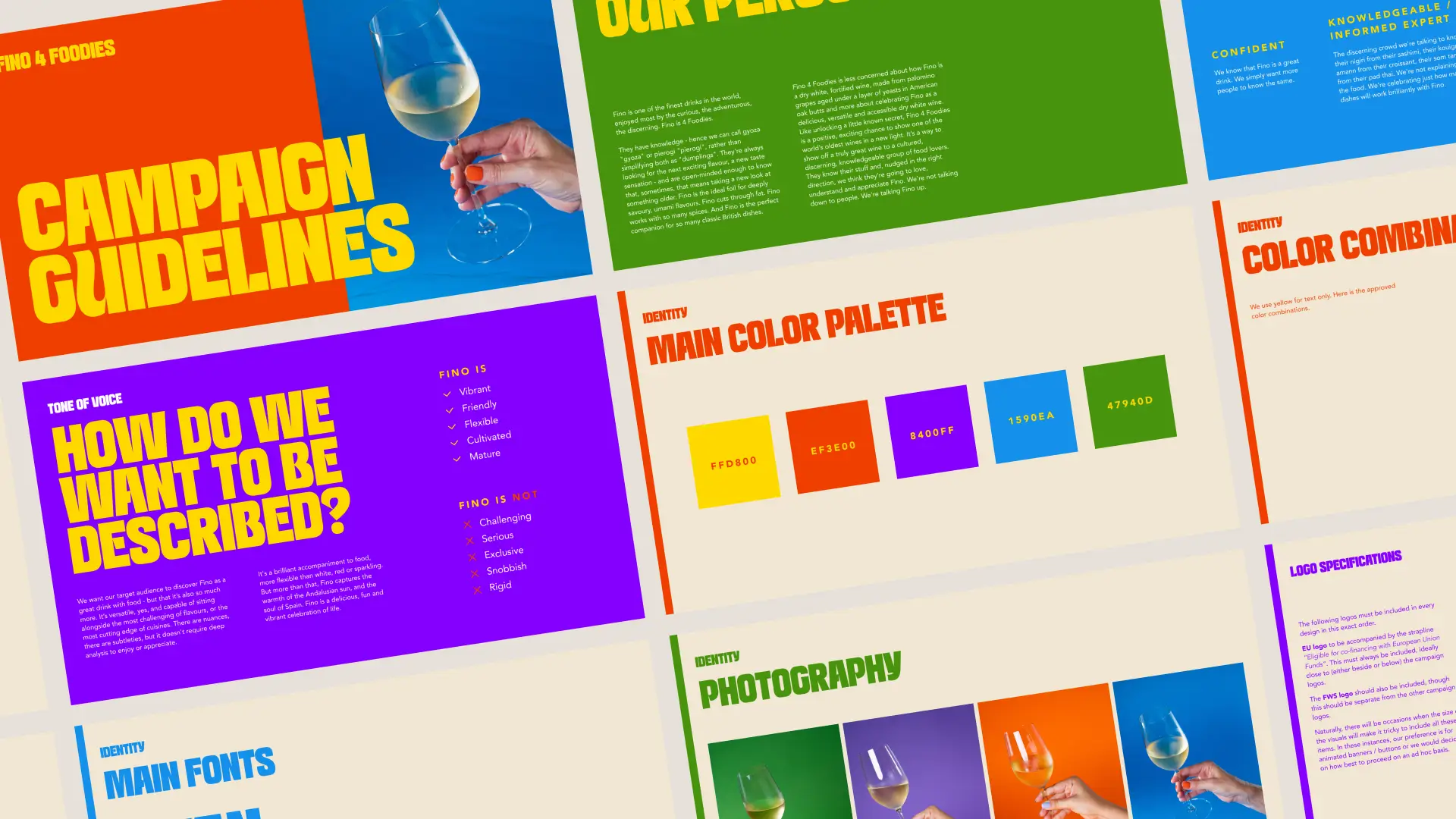 Vivid minimalism advertising methods, featuring bright colours and simple typography, cut through digital noise to reach the target audience. Copywriting added relevance and humour to portray Fino as a lively wine from Spain, departing from traditional advertising messages.